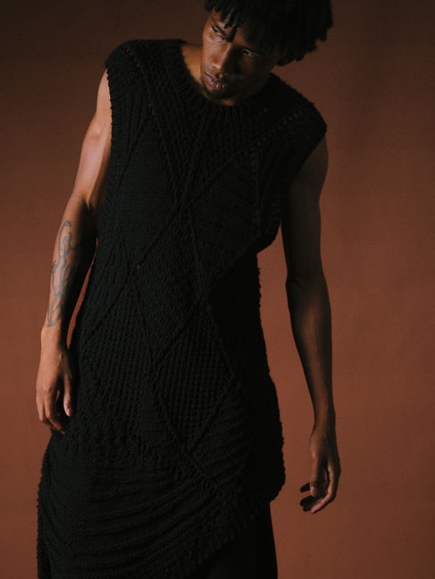 This season, I aim to further explore and extend this approach to clothing. The "TRANCE" series, to me, represents a concept of transcending the material world and emphasizing the significance of the inner self. In the designs, some pieces will feature a more minimalist or primitive single-panel cut to highlight the unrefined purity of the materials. Additionally, I plan to incorporate more personalized design elements, such as deconstructing and reassembling cut and sew garments with hand-knitted sweaters.